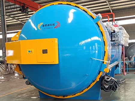 液壓開門熱壓罐的特點在于其開門操作是由液壓系統(tǒng)控制的,通過液壓缸或者其他液壓裝置實現(xiàn)開合,這種設(shè)計使得操作更加便捷和穩(wěn)定。
